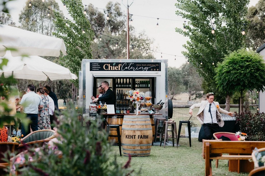 Ideal for weddings or outdoor events with more than 40 guests. Stock the coolroom with your own beverages. Comes complete with a wine barrel bar for serving.