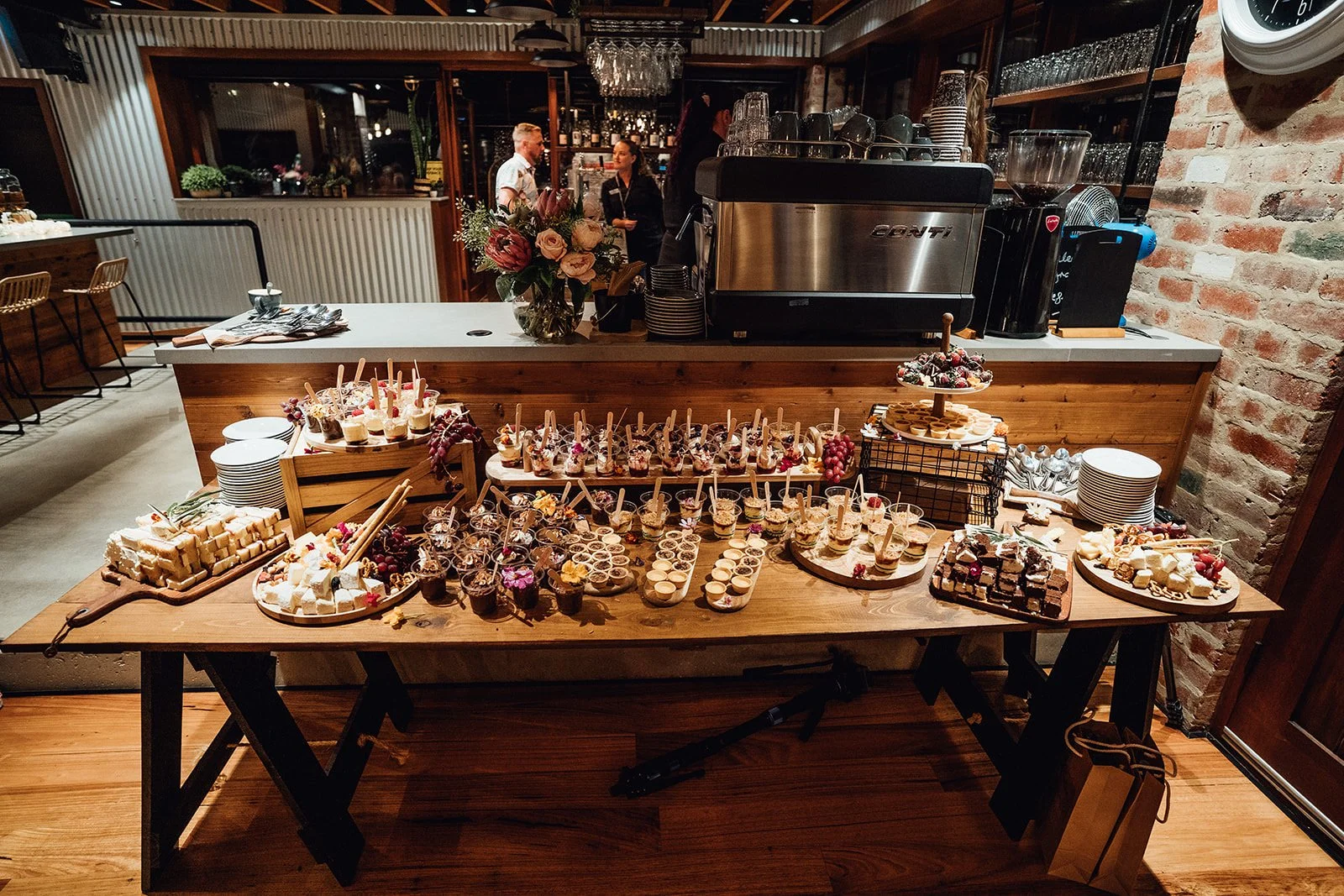 An assortment of indulgent desserts, served on a central communal table for your guests enjoyment.
